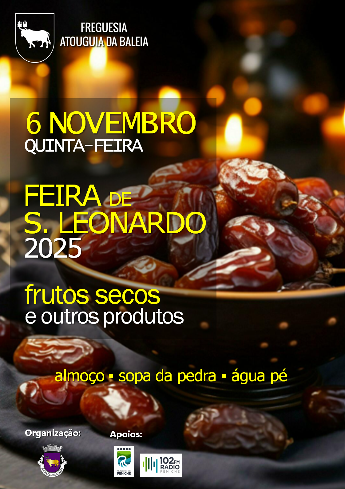 Dia 6 de Novembro, quinta-feira, venha até à vila de Atouguia da Baleia para a nossa feira dos frutos secos! Haverá almoço de sopa da pedra, água-pé, castanhas e muitos outros produtos para comprar. Participem!