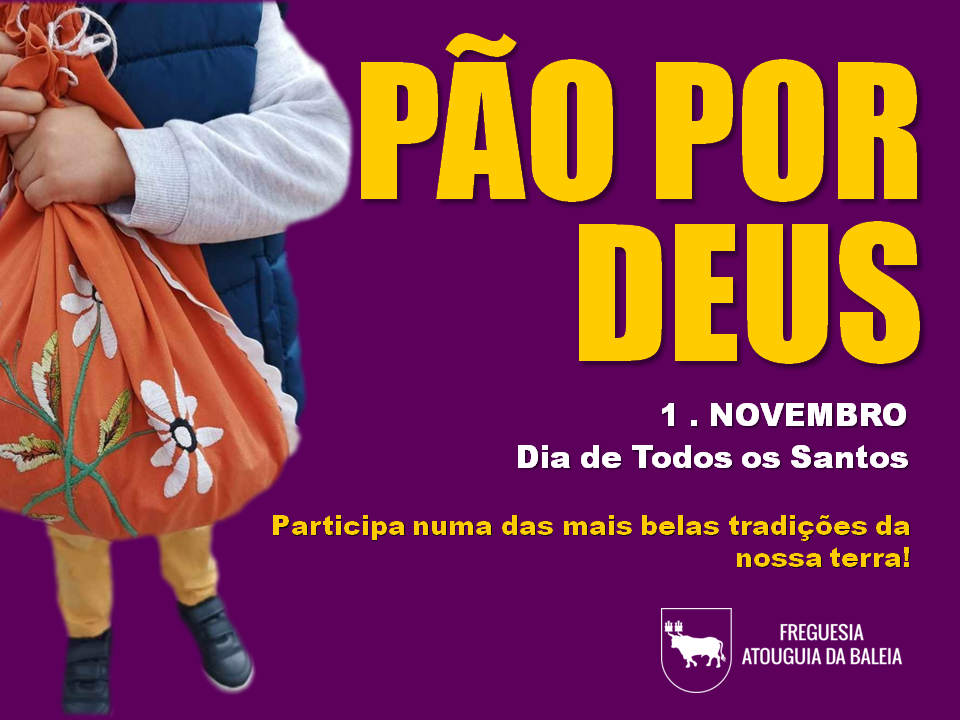 O Pão por Deus é uma das mais belas tradições da nossa terra! No Dia de Todos os Santos, 1 de Novembro, as crianças saem de manhã bem cedo às ruas em pequenos grupos, levando um saquinho bonito para as ofertas, e pedem “Pão por Deus” de porta em porta.